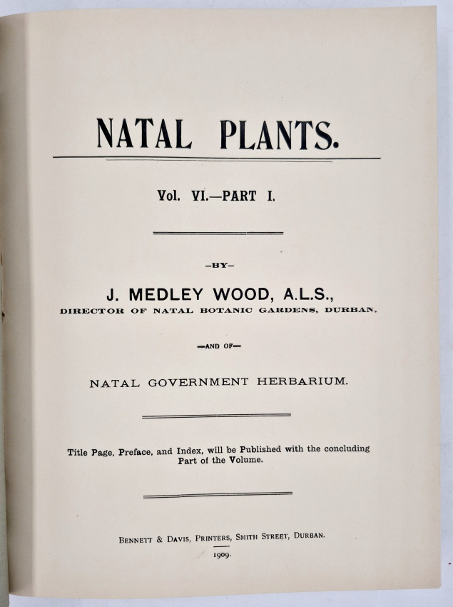 Kerkham (A.S.) Southern African Botanical Literature 1600-1988, number 748. 'The first illustrated botanical book produced entirely in South Africa.' Complete sets are now scarce.