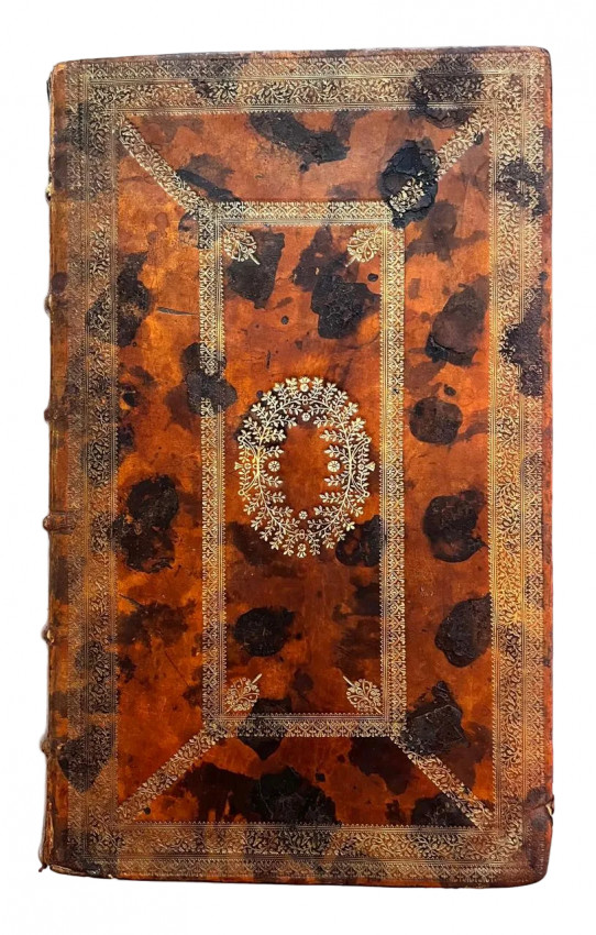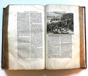 viii + 728 pages +18 page index, 120 pages + 2 page index, illustrated, folding plates, folding maps, water stain to top few cm throughout, a.e.g., full leather with decorative gilt, some age-related wear, cracked at top and bottom of spinal creases