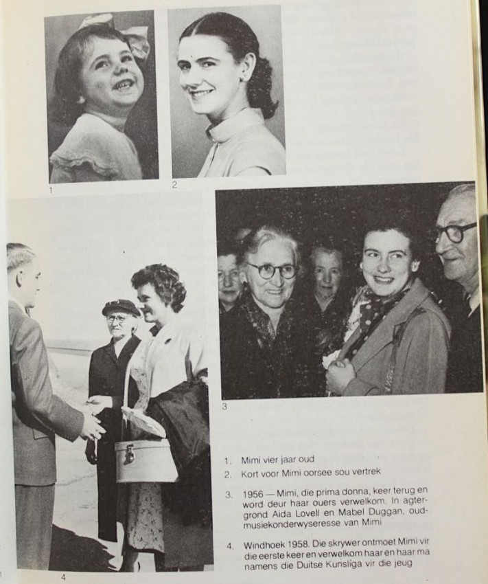 Mimi Coertse (1932- ) is a South African soprano who became internationally famous after she performed in all the major opera houses of Europe. In 2020 she was inaugurated as a living legend in the South African Legends Museum. Wouter de Wet's book, published in 1976, has the distinction of being the first biography on Coertse.