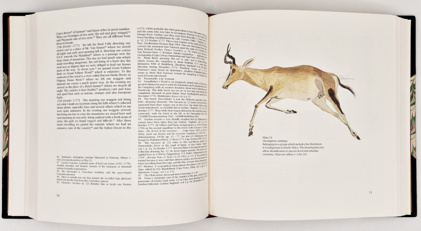 ‘Although a version which differs from this text was published in Paterson’s lifetime, this original record of his Cape travels is here published for the first time – a triumph of understatement, a laconic tour de force, and a marked contrast to the flamboyant verbosity of his immediate successor, Francois le Vaillant. It is the first full-length account in English of extensive travel in the interior of Southern Africa and it records the ceremony of naming the Orange River, the first finding of fossils in southern Africa, and the first journey along the diamond coast.’ Editor’s note.