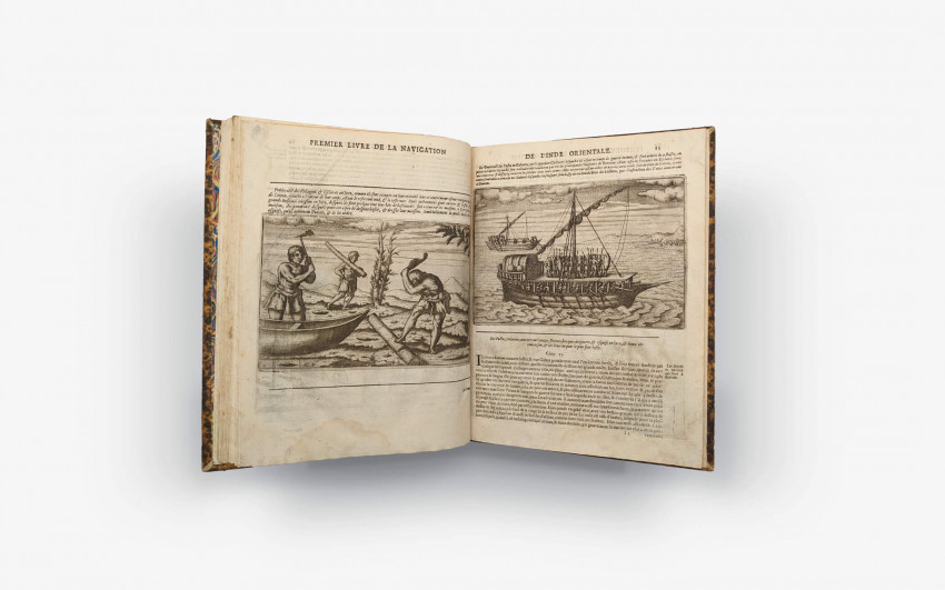 In addition to the reissues, the copperplates from the original edition were reused in Isaac Commelin's monumental compilation of Dutch voyages, "Begin ende voortgangh," published in 1646, testifying to the lasting influence of this First Book of the History of Navigation in the East Indies.