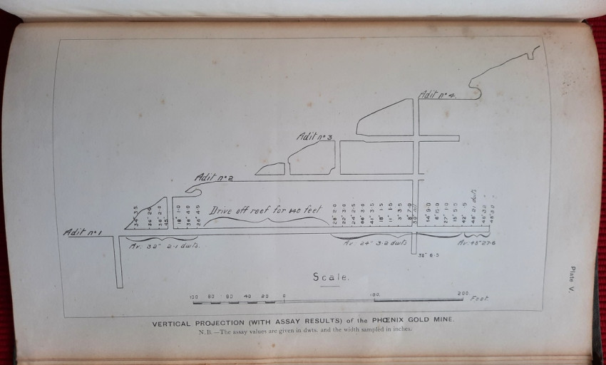 6) Phenix Gold Mine. Vertical Projection, with Assays;