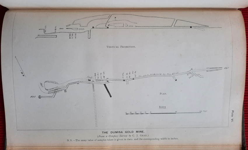 7) Dumisa Gold Mine. Plan and Section, with Assays. From a compass survey by C. J. Gray;