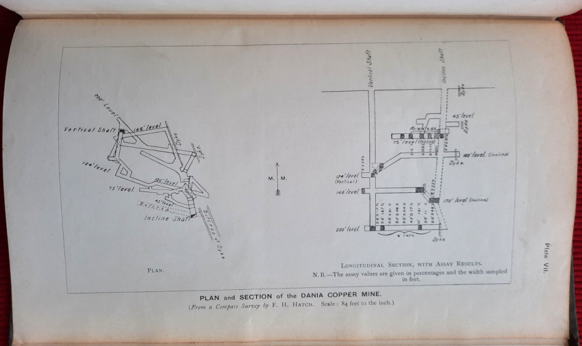 8) Dania Copper Mine. Plan and Section, with Assays. From a compass survey by F. H. Hatch.
