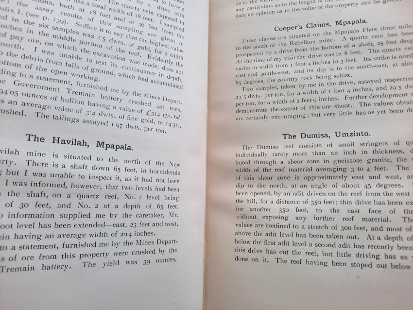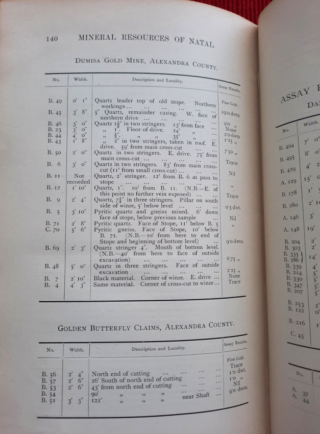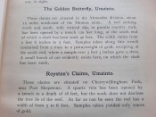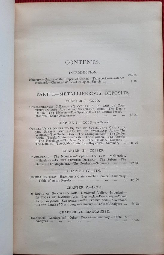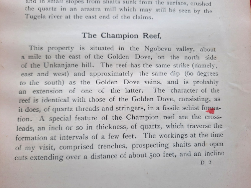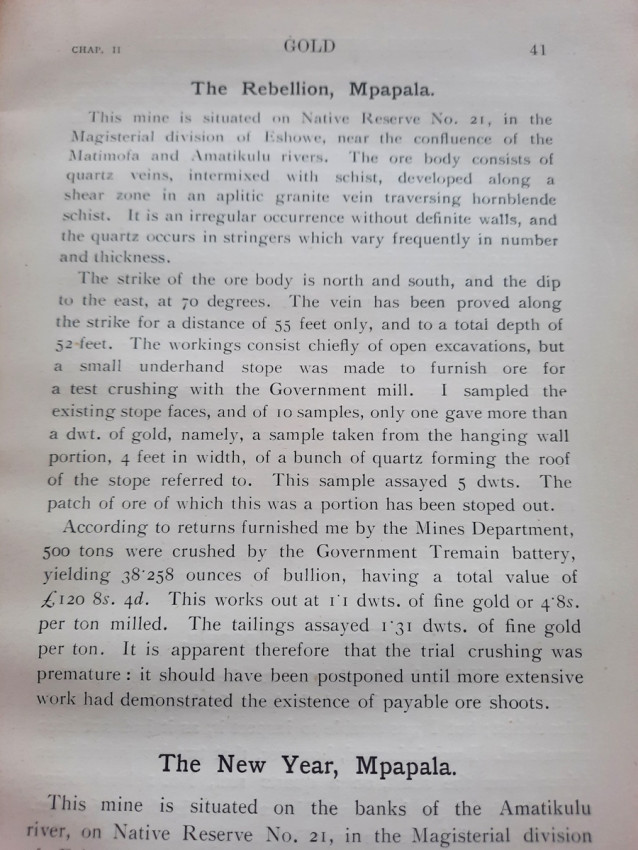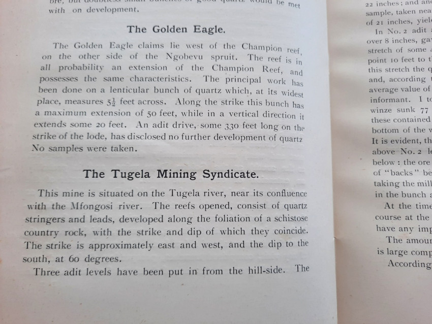 - Chapter II. which contains: Quartz Veins occurring in, and of subsequent origin to, the Schists and Granites of Swaziland Age; The Wonder. The Golden Dove; The Champion Reef; The Golden Eagle. Tugela Mining Syndicate; The Nkozana; The Phœnix; The Rebellion; The New Year. The Havilah; Cooper's; The Dumisa. The Golden Butterfly; Royston's; Summary).