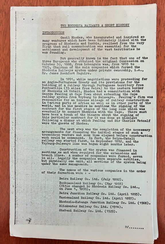 Included is the Illustrated Life Rhodesia Magazine "The Trailblazers - The Story of Rhodesia Railways" published in 1973.