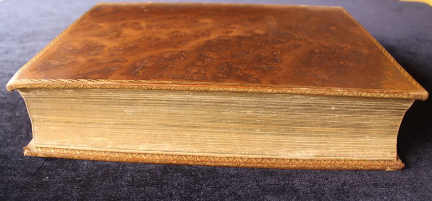 Stunningly bound in tree calf gilt by Riviere, spine in 6 compartments, red and green morocco spine labels, all page edges gilt, marbled endpapers.