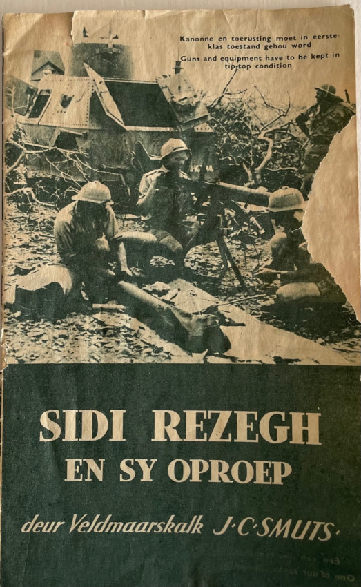 6. Sidi Rezegh and Its Call./ Sidi Rezegh en Sy Oproep. 1942. 22pp. fragile pamphlet in the original pictorial wraps and containing photographic images within. A largish chip along the fore edge of the rear Afrikaans wrapper, otherwise a good copy of this fragile item.