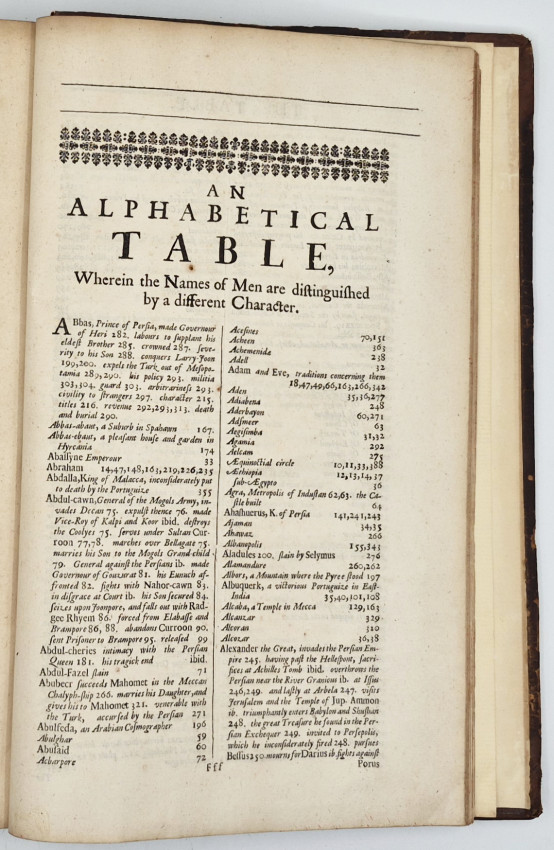 Third edition 4th impression: 399, xvi, (xvi Alphabetical Table) pages, additional engraved pictorial title page, 3 engraved plates - one the double-page engraving of Persepolis by Wenceslas Hollar, maps and engravings in the text, contemporary calf rebacked and recornered, stamp of D.D. Williams Library, Red Cross Street London on the verso of the engraved title page, bookplate on the front paste-down endpaper, contents crisp, a very good copy.