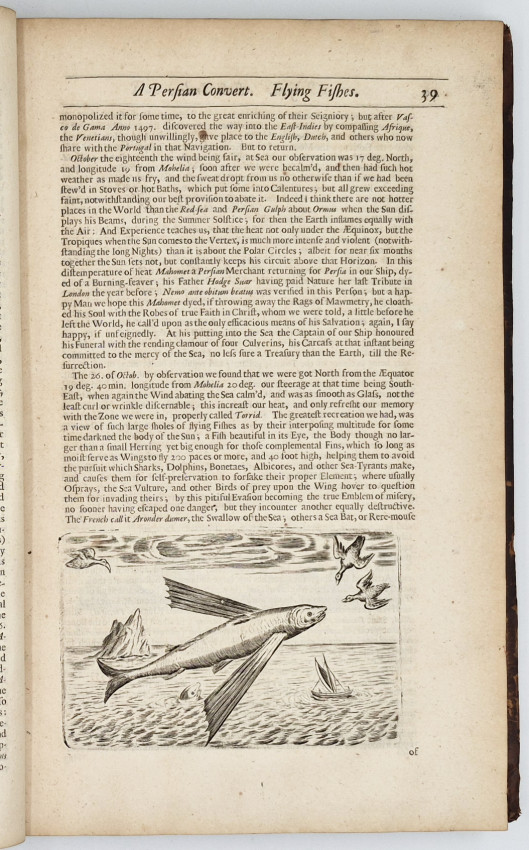 'Herbert's Travels was among the most popular, appearing in five printings between 1634 and 1677. Herbert made the best of the experience by composing a narrative of the journey there and back with digressions on the various places and peoples he encountered. The voyage out began in Dover, sailed via the Canary Islands, Robben Island, around the Cape of Good Hope, stopped at Madagascar, Ethiopia, Goa, and Surat seeing Coryate's grave, eventually arriving at Gambrun [Bandar Abbas].