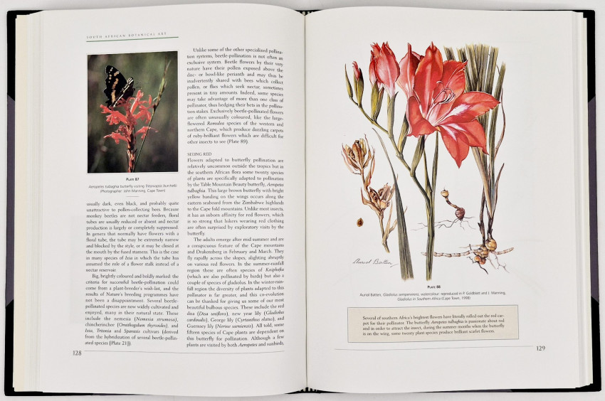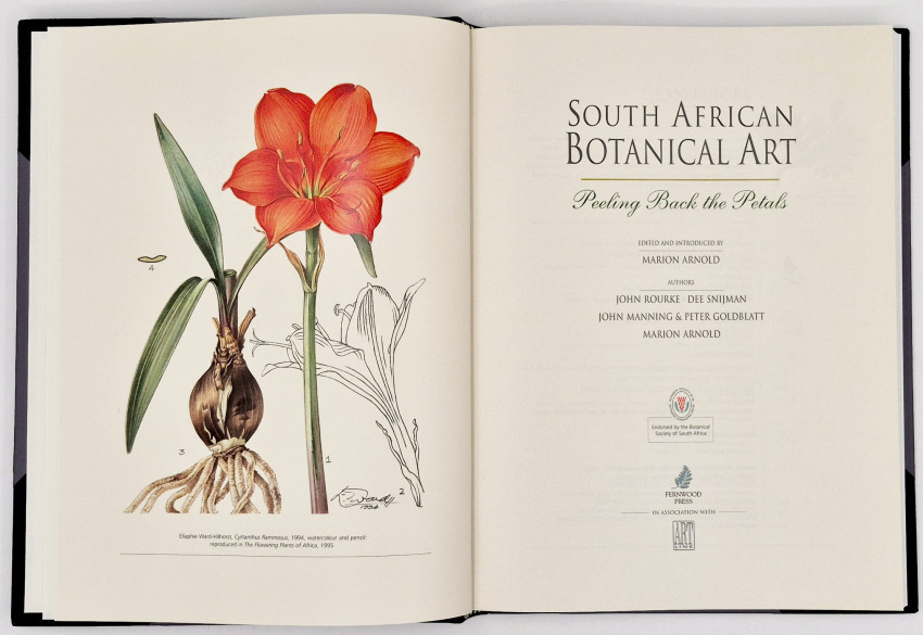 Editor’s note. ‘Remarkable images of plants created by the most talented of botanical artists, are housed in store rooms of botanical institutes and museums. Yet the oil paintings, etchings and watercolours of ‘fine’ artist – depicting the same plants – are located in art galleries. Why are plant portraits classified differently, and kept apart? Is plant imagery to do with science, or with art? Do the two ‘kinds’ of art ever meet? This unique and ground-breaking book metaphorically ‘peels back the petals’ to explore southern African plant portraiture and discovers the meanings ascribed to the genres of ‘botanical art’ and ‘flower painting’. Well known for their particular contributions to botany, art, and art history, authors Marion Arnold, Peter Goldblatt, John Manning, John Rourke and Dee Snijman examine plant portraiture in southern Africa over several centuries. They provide engrossing and sometimes unique revelations on a broad spectrum of issues, including species ‘discovery’, insect pollination, biological classification, specimen collection, plant naming, portraiture, and the manner and style of artistic representation. The texts are enhanced and liberally illustrated by works of some of the countless travellers, botanists an artists who have so passionately and meticulously recorded South Africa’s rich floral heritage.’