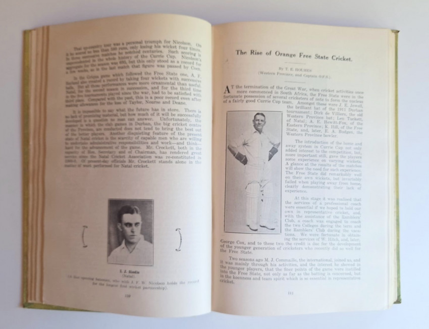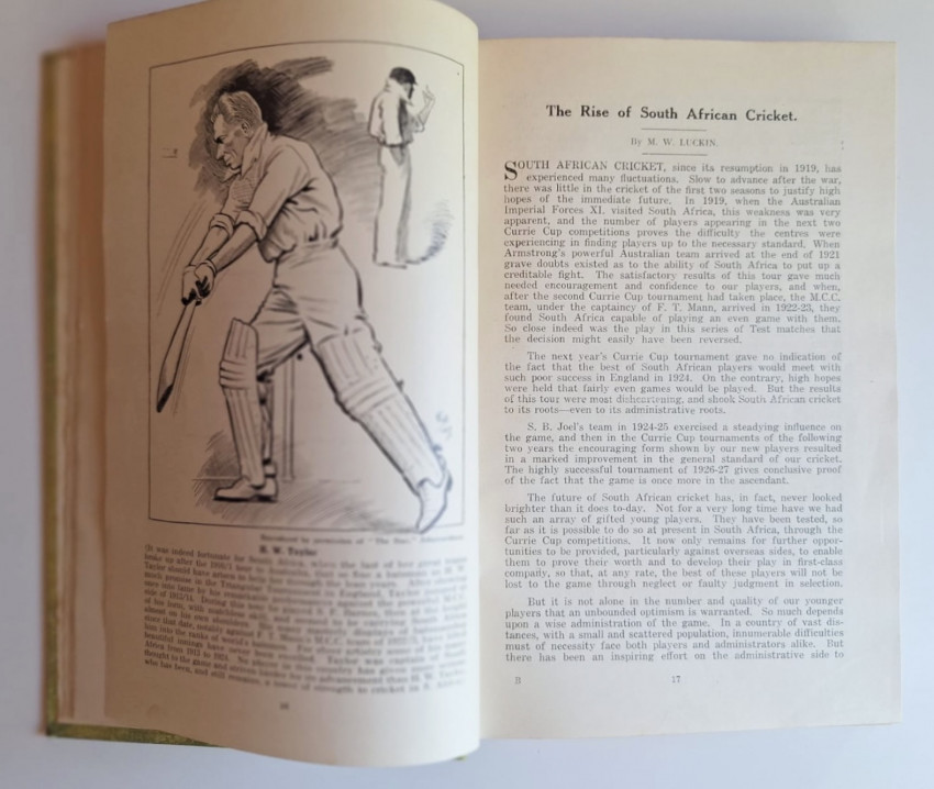 The scarce middle volume of a three book set; History of South African Cricket, including the Full Scores of All Matches Since 1876; South African Cricket 1919-1927; South African Cricket 1927-1947