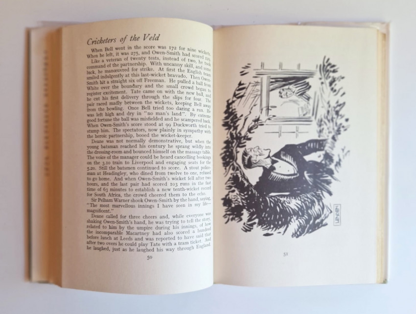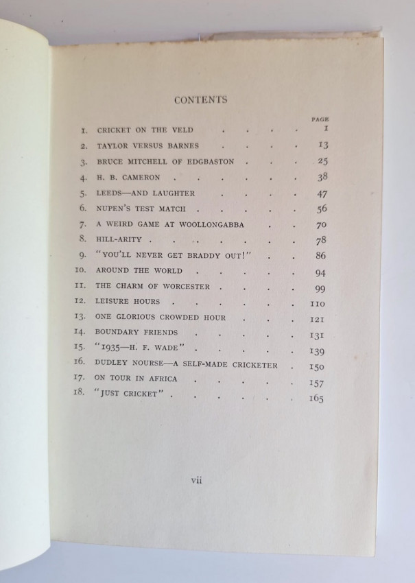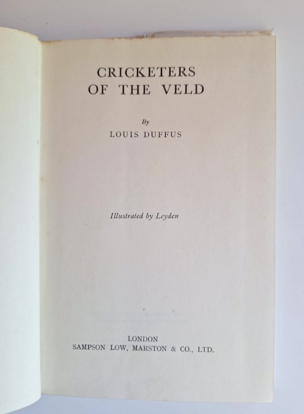 Duffus was the doyen of cricket correspondents, who travelled with the South African team. From dustjacket “ In Cricketers of the veld, Duffus tells the story of South African Cricket and cricketers covering some twenty years, and includes character studies of several South African players... the narrative is based on Duffus’ six cricket tours (England, Australia, New Zealand and South Africa).”