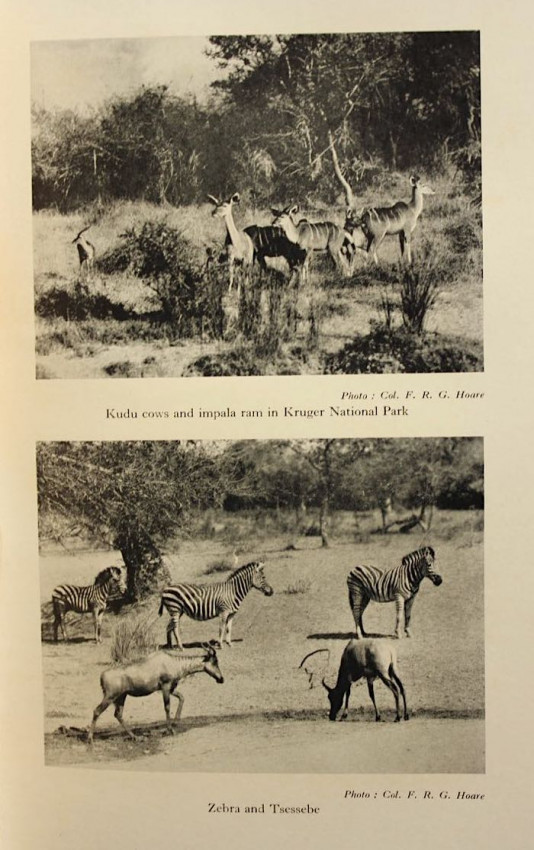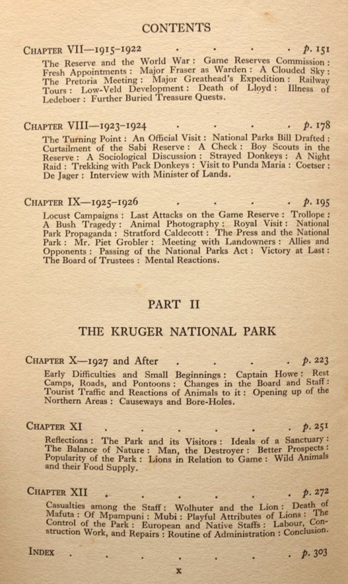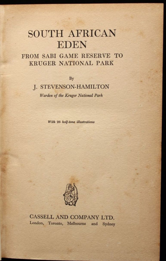 In this book he tells the graphic story of its development, of the difficulties and the prejudices he had to conquer, and of how the Kruger National Park has become a great tourist resort and the pride of South Africa.' - editor's note