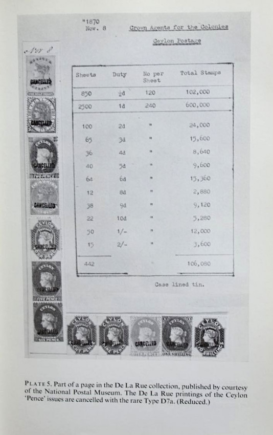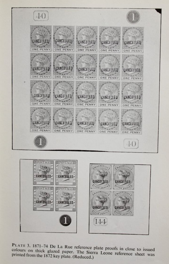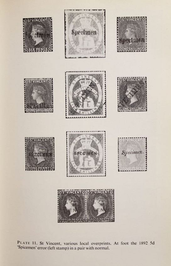 Stamps issued before June 1884 which have printed or well-impressed 'SPECIMEN' or CANCELLED' overprints, which are found on the stamps of a number of different territories, are generally printers' reference copies not necessarily taken from the first printings. Those with cruder 'SPECIMEN' handstamps, found on the stamps of one territory only, generally locally overprinted, are believed mostly to have been used to provide presentation sets. Nearly all the specimen stamps of the Crown Colonies of this period are rare to very rare. Many of those which have come on to the market will be found to have some clipped perforations, owing to their having been separated by scissor-minded bureaucrats, and they will often be short of gum, owing to their having been stuck down in reference collections.' - from the author's Preface