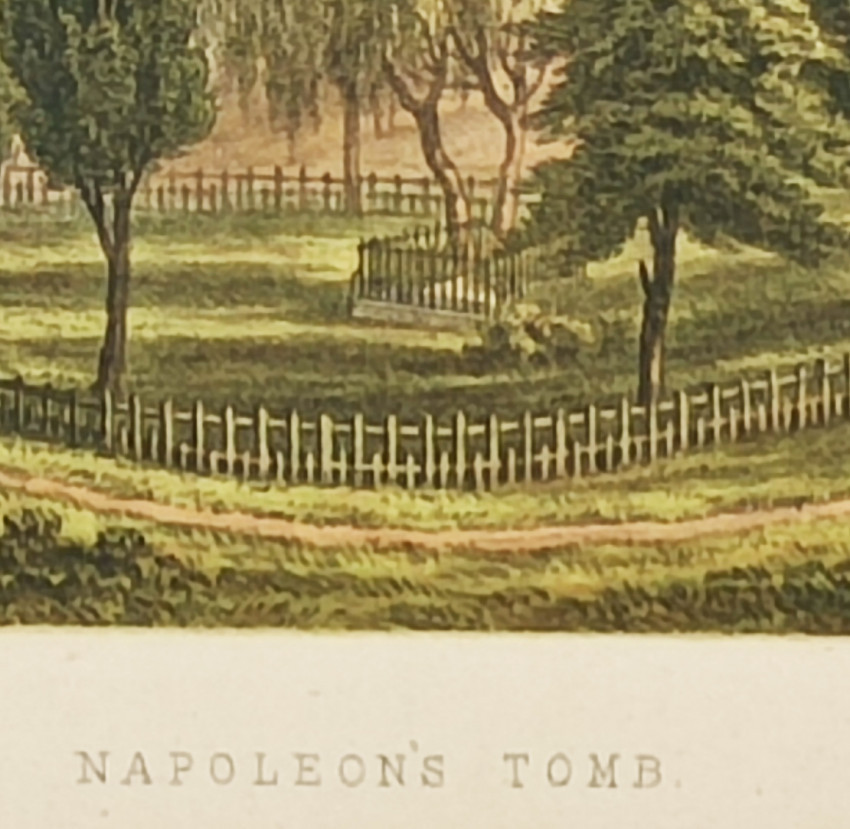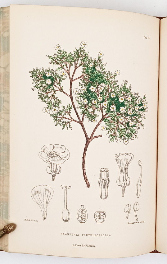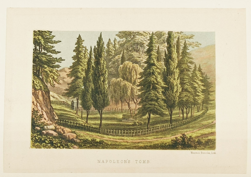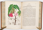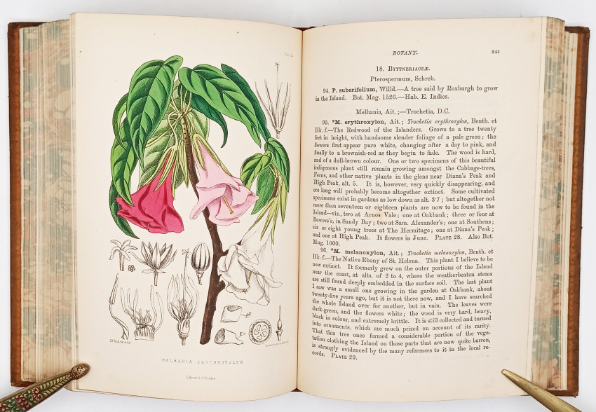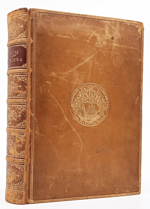 First edition: xiv, 426 pages, chromolithographic frontispiece and 7 similar plates - all India paper proofs - including one of Napoleon's tomb opposite page 27 , 45 further lithographic plates - including 37 botanical colour lithographs, 3 maps - 2 are double page spreads, full brown calf maroon title label on the spine which is decorated gilt in panels – the leather on the spine and corners is rubbed, marbled endpapers and edges, contents bright, a very good copy.