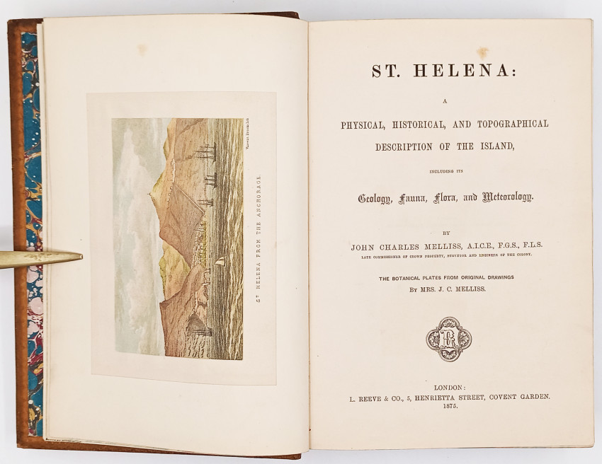 During his stay on St Helena, J.C. Melliss was encouraged to take an interest in the natural history and on his return to England, Melliss published a landmark book St Helena which established him as the first historian of the island and included a section on natural history intended as a precursor for an ambitious broader study of the African islands of the southern Atlantic. The botanical illustrations for the floristic survey were by his wife. His book provides important documentary evidence of a unique flora under threat as it was being heavily modified by the island's inhabitants and a number of species were in the process of becoming extinct.