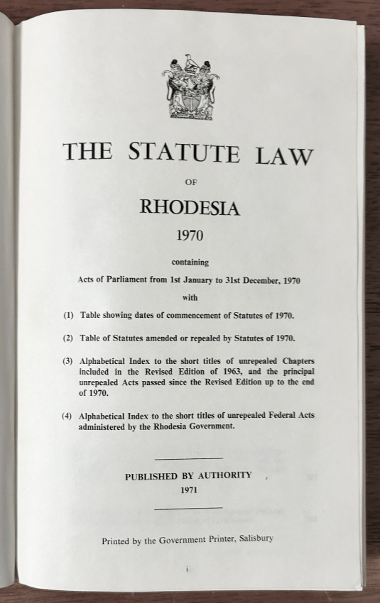 THE STATUTE LAW OF RHODESIA 1970