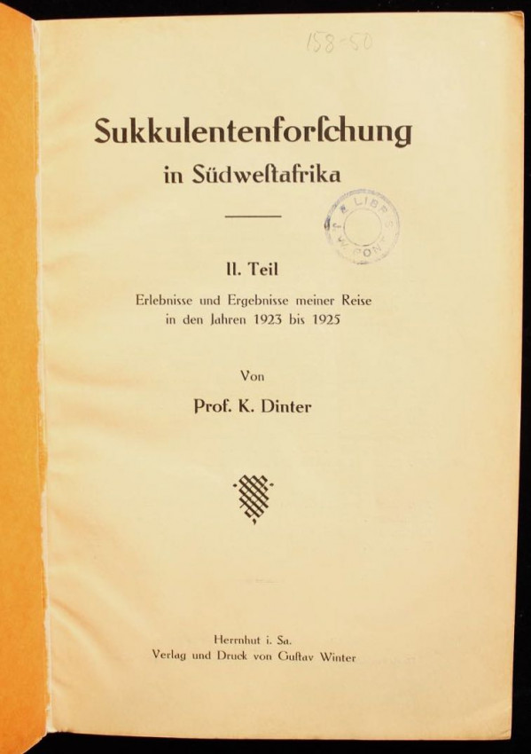 "Research on South West African Succulents. Experiences and Results of my Travels from 1923 to 1925."