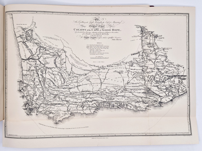 First Edition: 41 pages of text, 11 folding maps (1 in a pocket in the back cover - insect damaged at the first fold), full red leather, titled gilt on the upper cover.