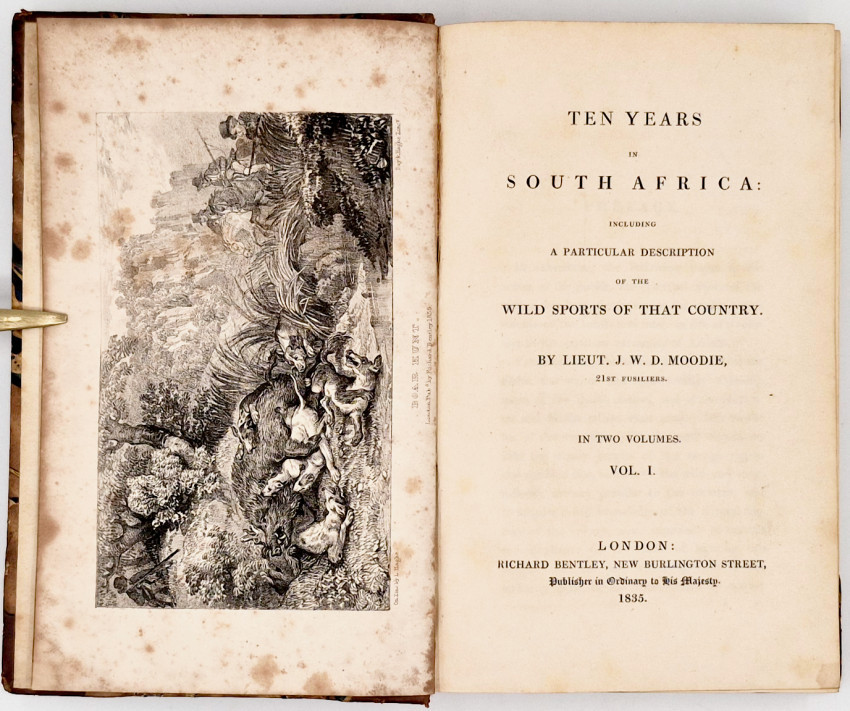 Dictionary of South African Biography, volume 3, page 626: ‘Moodie arrived in South Africa to join his brother Benjamin who was farming at Grootvadersbosch near Swellendam. In 1821 he obtained land at Sir Rufane Donkin's abortive Fredericksburg settlement but the following May found himself to be almost the last person left there. It was a plan of which Lord Charles Somerset had thoroughly disapproved and with Moodie's departure the scheme came to an end. He went to join Benjamin on Long Hope, the latter's new property on the west bank of the Lower Bushman River. In 1828 he tired of farming and set out on a long journey through Kaffraria before settling in Grahamstown, leaving South Africa in 1832. A prolific writer, Moodie vividly describes his various activities and travels and in, 'Ten Years in South Africa', leaves an important record of the country at that time.’