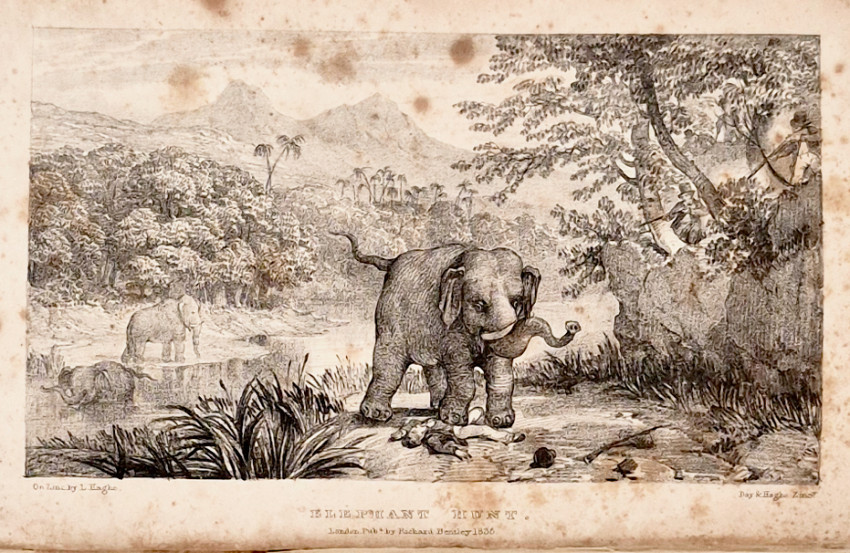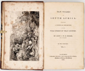 First Edition: 2 volumes: I. xii, 347. II. viii, 352 pages, lithographic frontispiece in each volume, 2 leaves of music - Hottentot Airs, half brown calf titled and decorated gilt on the spines, marbled paper sides, bookplate on the front paste-down endpapers. The frontispieces are oxidised around the edges and are foxed which also affects the two leaves of music, the contents are bright and free of foxing.