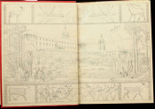 Publisher's red cloth binding with gilt titles and design on front panel and spine. Original beige dust jacket with green titles.