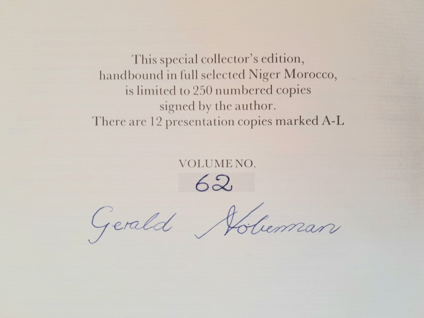 The Special Collector's Edition, bound in full Niger Morocco, number 62 of 250 numbered copies, Signed by the author. Comes in a decorative cloth and leather slip case. Well illustrated with colour plates, 397 pages. A Fine copy of this scarce edition.