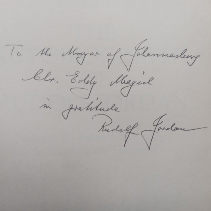 Inscribed by the author to Eddy Magid, then-mayor of Johannesburg.