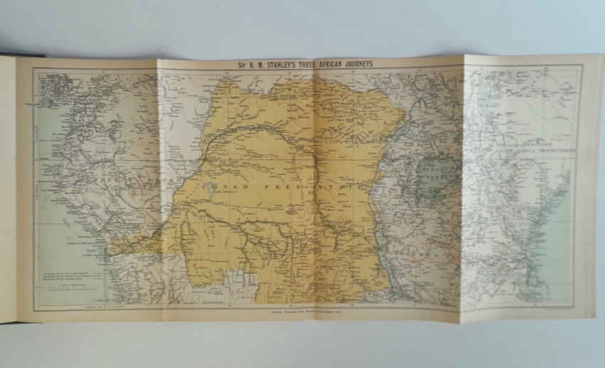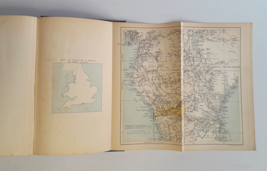First edition: xvii, 539 pp with frontispiece portrait, 15 plates, folded map, original blue cloth boards with gilt title and vignette on the upper cover and spine. Overall a good copy with small tears to spine end paper