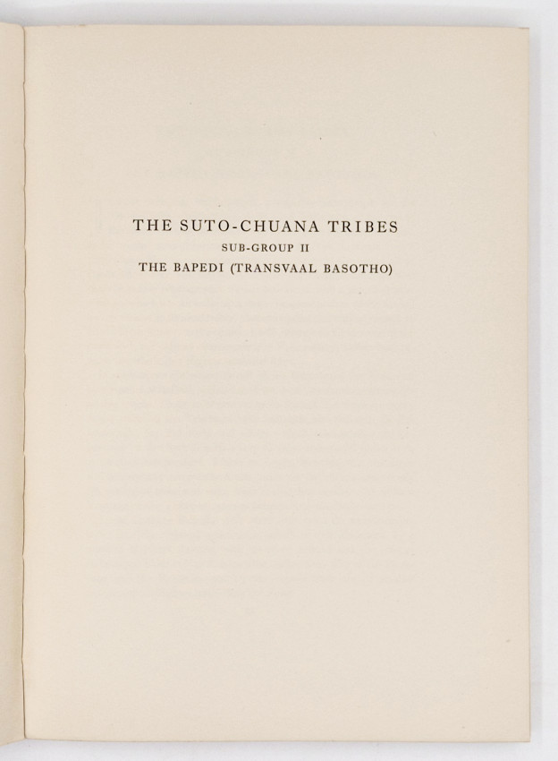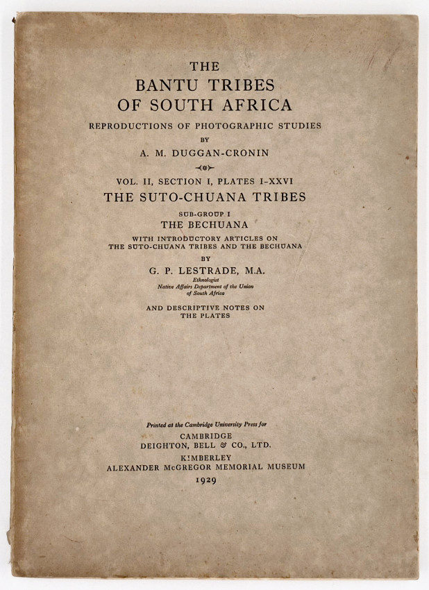 Vol. II, Section I, Plates I - XXVI. THE SUTO-CHUANA TRIBES. Sub-Group I - THE BECHUANA with an introductory articles by by G.P. Lestrade. 1929.