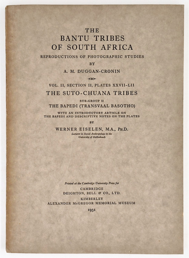 Vol. II, Section II, Plates XXVII - LII. THE SUTO-CHUANA TRIBES. Sub-Group II THE BAPEDI (TRANSVAAL BASUTHO) with an introductory article by Werner Eiselen. 1931.