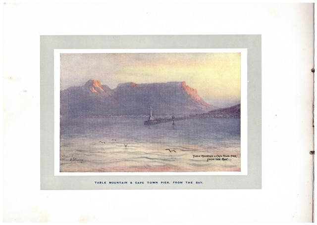 [15] pages of plates: colour reproductions of art works of the Cape (3 credited to A. Stanley). Stiff colour paper wraps stapled and bound with ribbon.