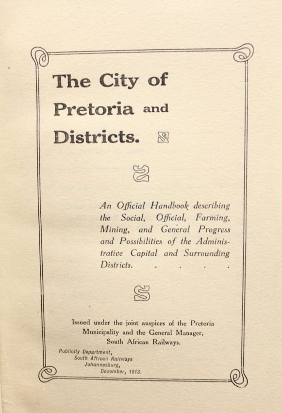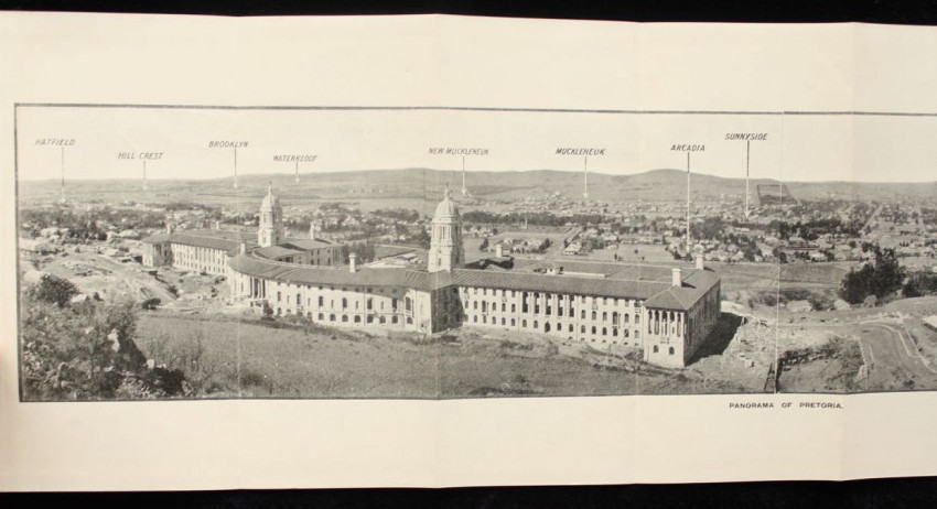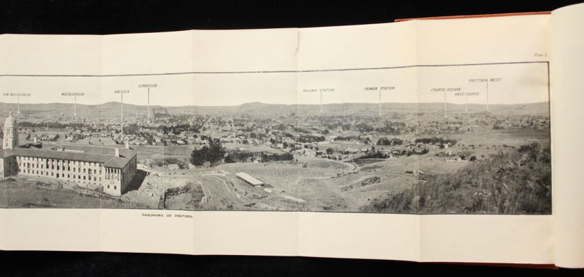 Book contains many illustrations and photographs. Fold-out panorama of Pretoria seen from the Union Buildings at front.