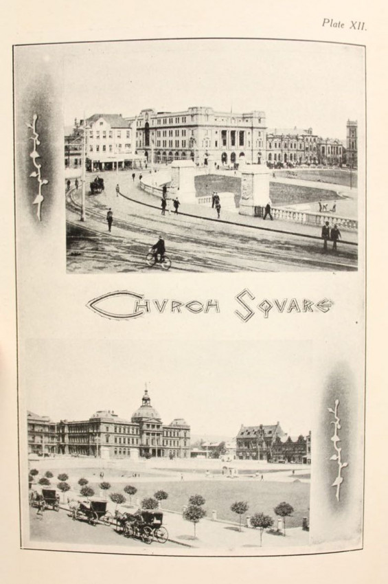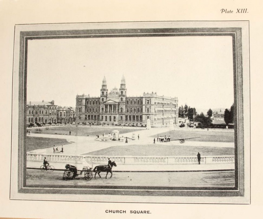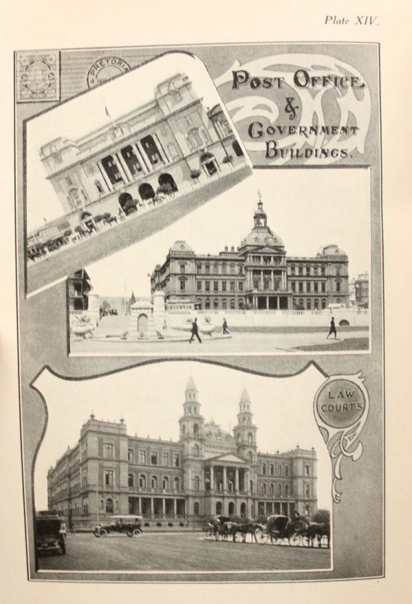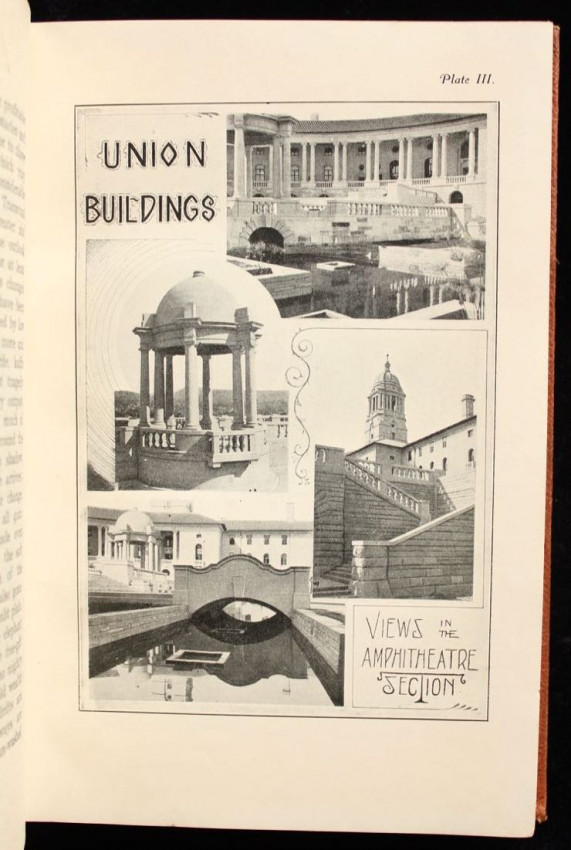 Publisher's pebble-grained pictorial cloth binding depicting with pride the then newly constructed Union Buildings.