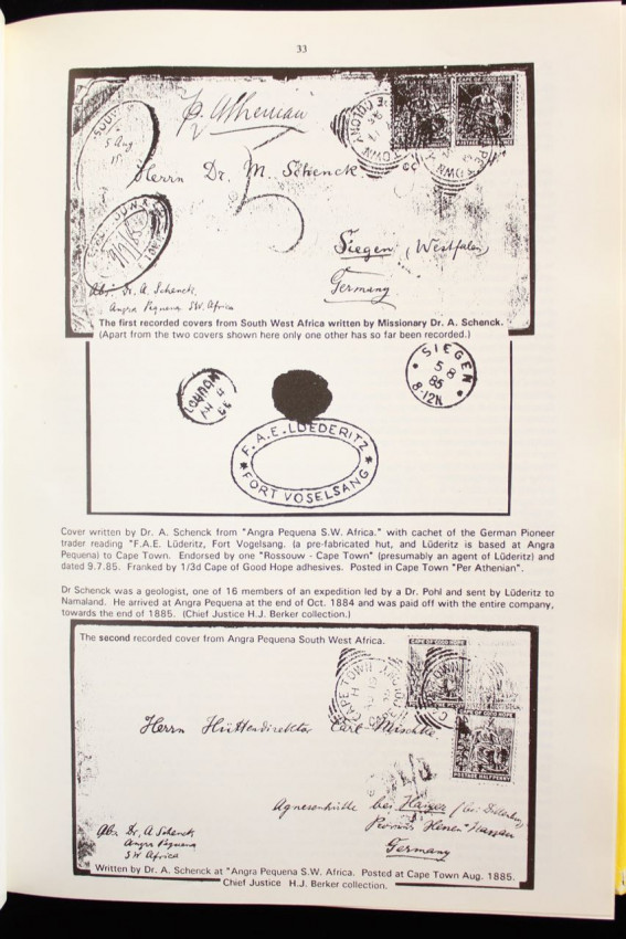 1.) Friedemann's book on the Postmarks of German South West Africa (1884-1915) as published by Dr Wittmann and translated into English by the author of this book, completely revised and expanded, with revised valuations and many photographs of rare covers.