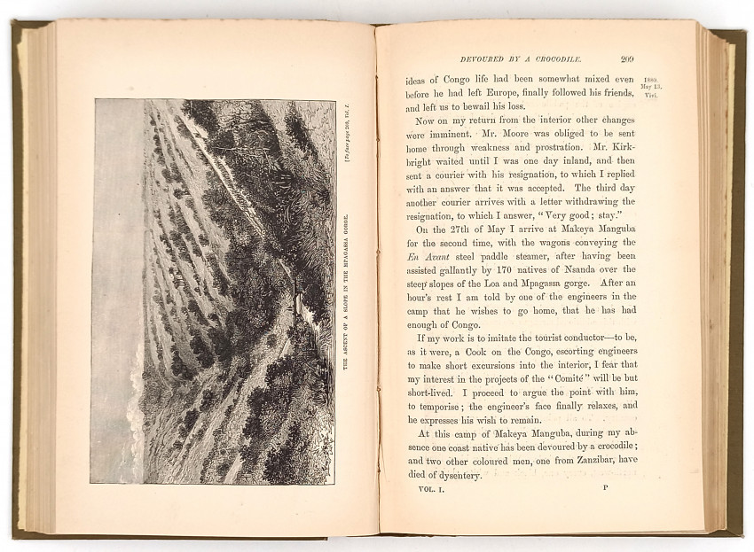 First Edition: Two volumes: 528 + 483 pages, frontispiece in both volumes, 5 folding coloured maps - 2 large folding at the end of each volume, 42 full page plates and 78 smaller illustrations in the text, original pictorial green cloth, small withdrawn library stamps on the verso of both title pages, a very good copy.
