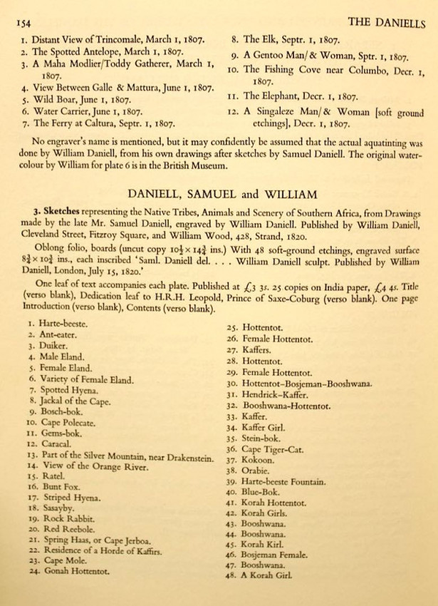 The author has spent nearly thirty years in compiling this work, with assistance from many sources. It is very fully illustrated, and the appendices provide a complete iconography and bibliography which will be invaluable to collectors. Here at last is the standard work on the Daniells.' - editor's note