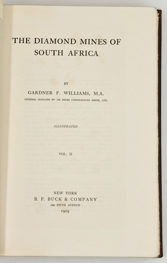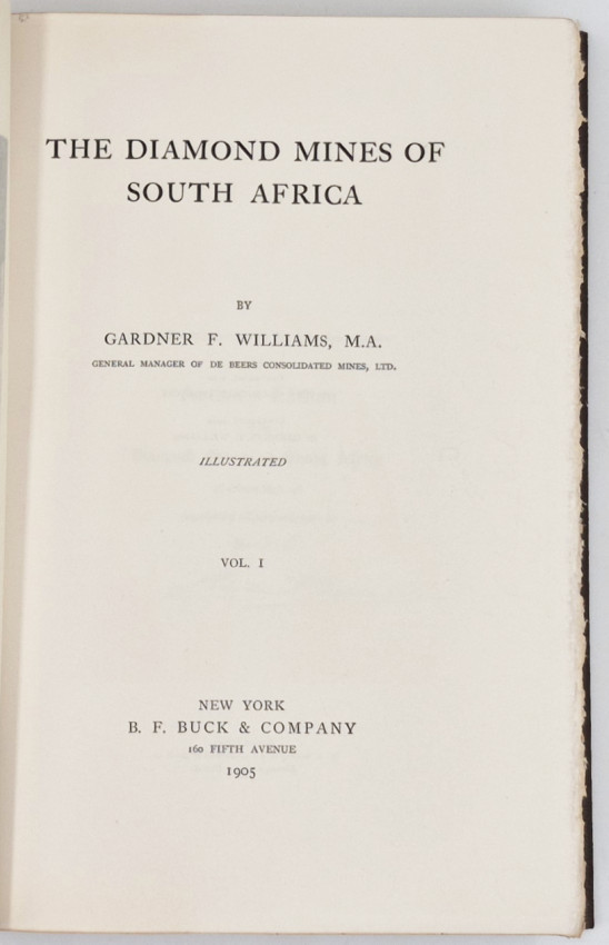 Mendelssohn (Sidney) South African Bibliography, Volume 2, page 614: 'The author of this historical and practical account of the diamond industry, and especially of the South African diamond mines, was for many years the general manager of the De Beers Consolidated Mines, a gigantic undertaking founded by the late Cecil John Rhodes. The volume contains a full description of the mines with the fullest details respecting their working.