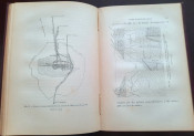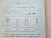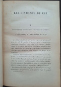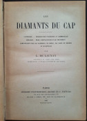 "Les Diamants de Cape. [Historique; Organisation Financiere et Commerciale; Geologie; Mode d'exploitation et de traitement, comparaison avec les gisements du Bresil, de l'Inde, de Borneo et d'Australie.]"; Red cloth hardcovers. Gilt titles on the front cover and spine; Text in French; Collation complete - Title page, VII, 239 pages, including illustrations, maps, tables, diagrams, and folding plans; Binding is tight and firm, light and ordinary signs of age and use. Small cut corresponding to the binding line on the top margin of the first flyleaf (front hinge), tiny piece of adhesive tape repairing a small cut on the vertical margin of the first page of the preface. Pages with some age taning and occasioanl small yellow stains, otherwise the text block is clear, without stamps, annotations or other marks in the text. A sound copy.