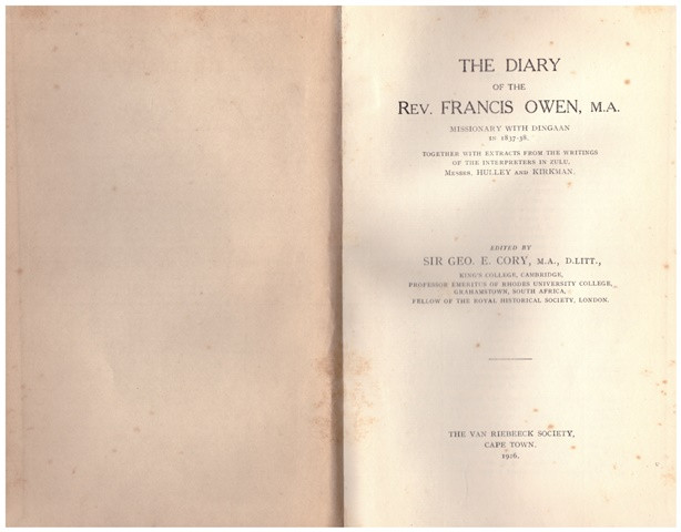 "Owen produced one of the best-known descriptions of life in Dingaan's kraal, including an account of the Retief massacre, of which he was the only white witness. This was the first time that the diary has been published in its entirety…" Van Riebeeck Society. Jeffreys was head of the Cape Archives Depot.