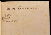 Short contemporary gift inscription on front endpaper, "M. M. Leuchars, 1937, from Cramond". Lady Mary Marion Leuchars was the wife of Colonel Sir George Leuchars, KCMG, DSO, a South African politician and military officer who died in 1924. He was a minister in General Louis Botha's First Cabinet from 1911 to 1912, when he resigned to protest against J.B.M. Hertzog's anti-imperial and anti-British sentiments. Sir George Leuchars' action was one of the causes which led to the rise of the Nationalist party, and more remotely to the amalgamation of the Unionists with General Smuts. Lady Leuchars died 1964 at the age of 105. Her Victorian home in Greytown, Natal Midlands, is now a guest house. (Portrait of Colonel Sir George Leuchars can be found in A History of the Zulu Rebellion 1906 and of Dinuzulu's Arrest, Trial and Expatriation by J. Stuart. See listing in this auction)