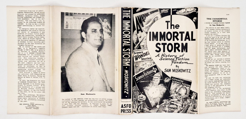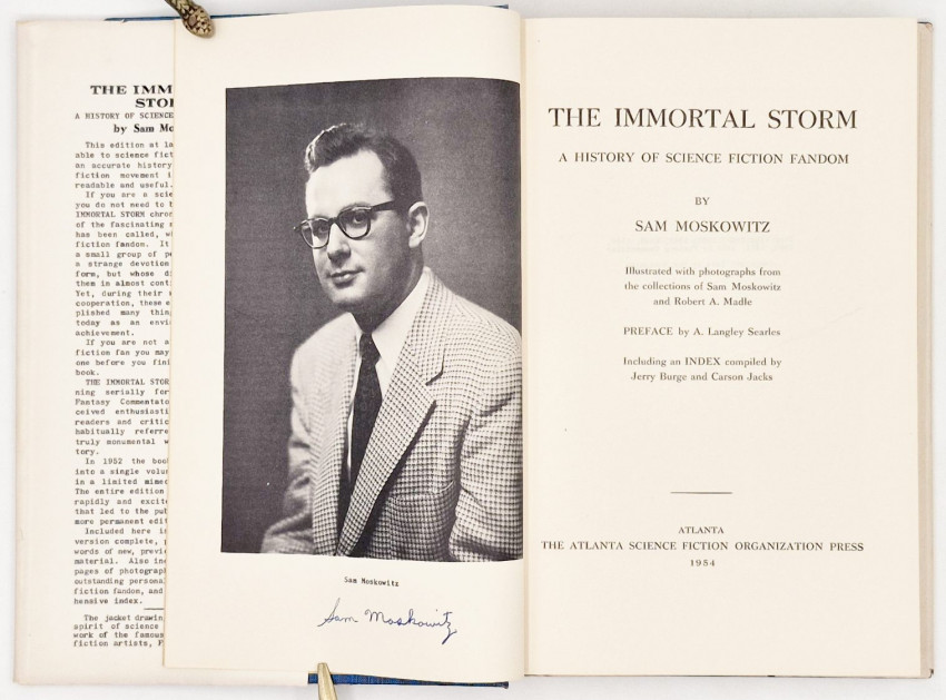 Currey (L.W.) Science Fiction and Fantasy Authors: A Bibliography of Their First Printings of Their Fiction and Selected Nonfiction – Revised Edition, page 307: ‘The Immortal Storm: A History of Science-Fiction Fandom. N.p.: Sam Moskowitz, November 1951. Wrappers. No statement of printing. Mimeographed. 150 copies printed. ALSO: Atlanta: The Atlanta Science Fiction Organization Press, 1954. No statement of printing. 1000 copies printed. First hardcover edition.’