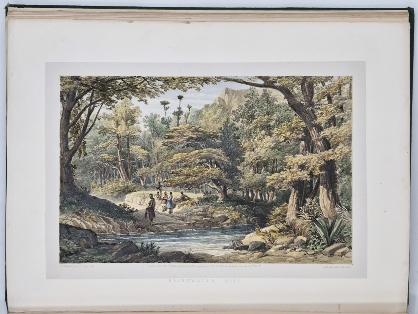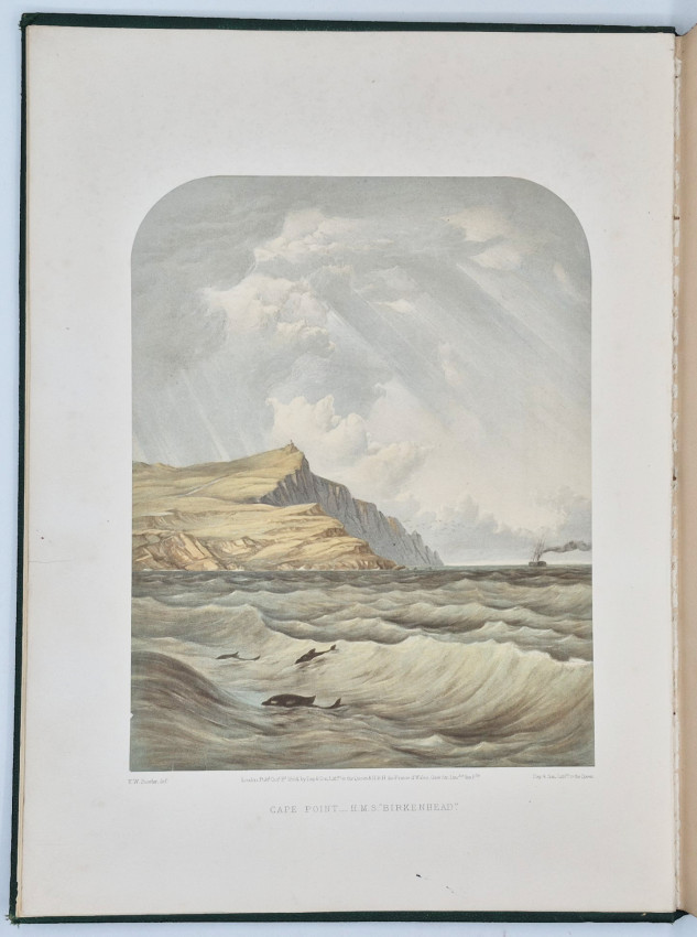 First edition: Unpaginated, triple tinted lithographic frontispiece (Cape Point - H.M.S. Birkenhead), 19 fine hand coloured double tinted lithographic plates heightened with gum arabic on blued India paper, each plate with accompanying text, original blind stamped green pebble-grained cloth, titled gilt on upper cover, all edges gilt, all the India paper proof images are in bright condition, a very good copy.