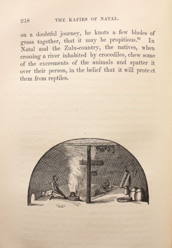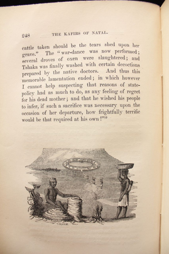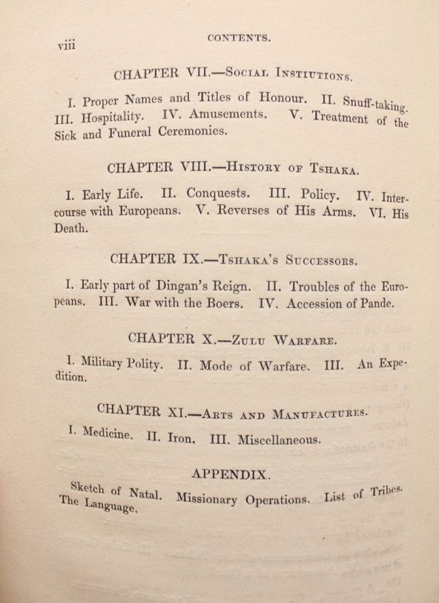 Mendelssohn (Sidney South African Bibliography volume 2 page 315: One of the best works on the native races of Natal and Zululand publshed up to the middle of the nineteenth century. The author took great pains to gain an accurate knowledge of the habits of the people during his four years' residence in Natal, and the results of his researches have been amplified by the addition of information collected from the works of Dohne, Isaacs, and others, and the MSS. of " the unfortunate traveller. Green," and from the evidence given by Mr. Fynn before a special com- mission.