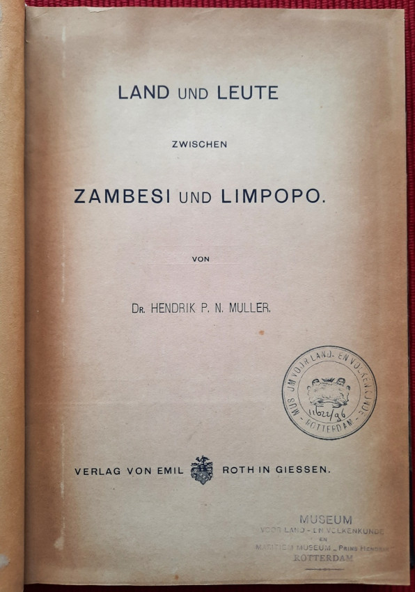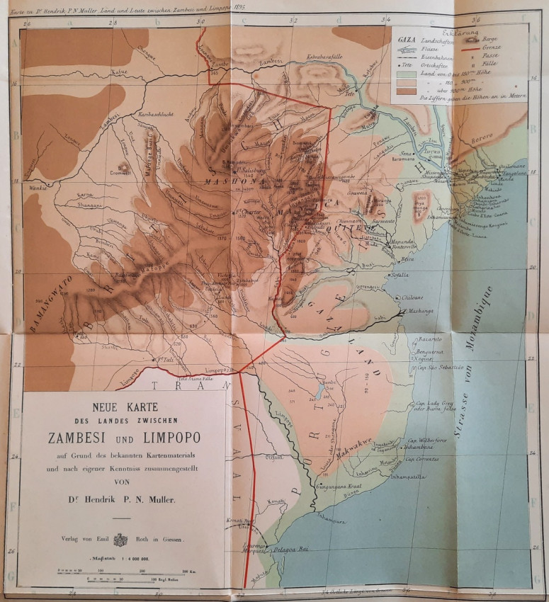 With 12 b&w photographic illustrated plates and color folding "New Map of the Country Between Zambezi and Limpopo (Compiled by D. Hendrik P. N. Muller based on available map material and his own knowledge)" (54 x 54 cm).