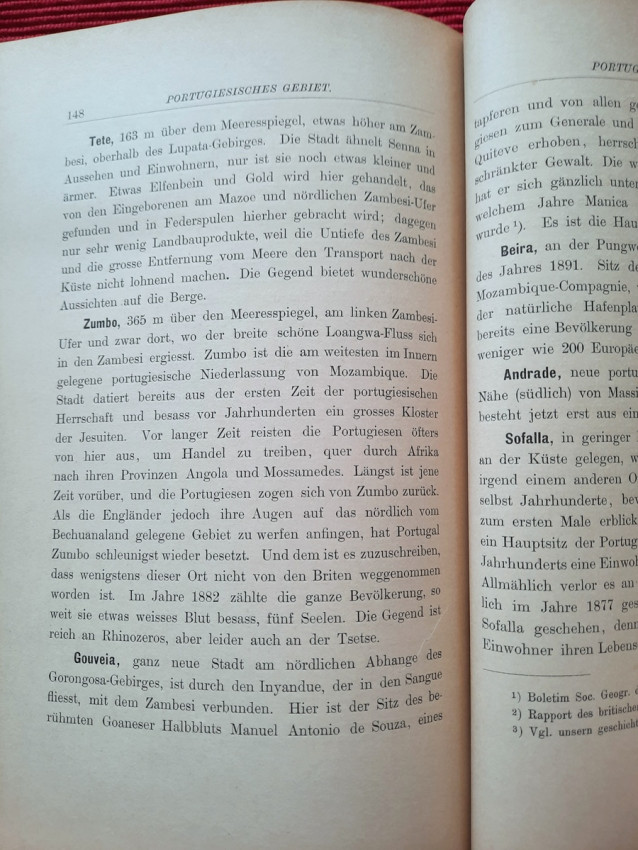 It was not possible for me to describe this region with a single word, as it can only be suggested by several names. The name Mozambique also encompasses an area north of the Zambezi, thus outside the region discussed here. Gazaland, a name originating from the name of an ancestor of the current reigning King Gungunyana, refers only to the coast and not the Zambezi region. The English territory comprises the land of the Matabili and Mashona peoples, but is usually simply called Mashonaland. Attempts are sometimes made to introduce the names Zambezi and Rhodesia (after the founder of the new British colony), but these have not yet been universally successful; and besides, these two names would also extend to land north of our region.