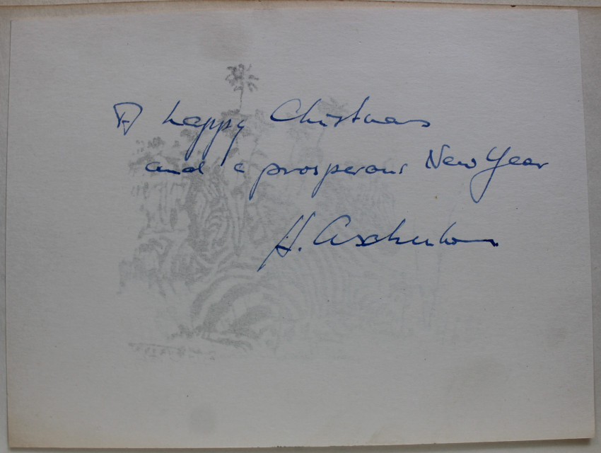 Attached to the verso of the ffep a christmas card signed by Aschenborn.