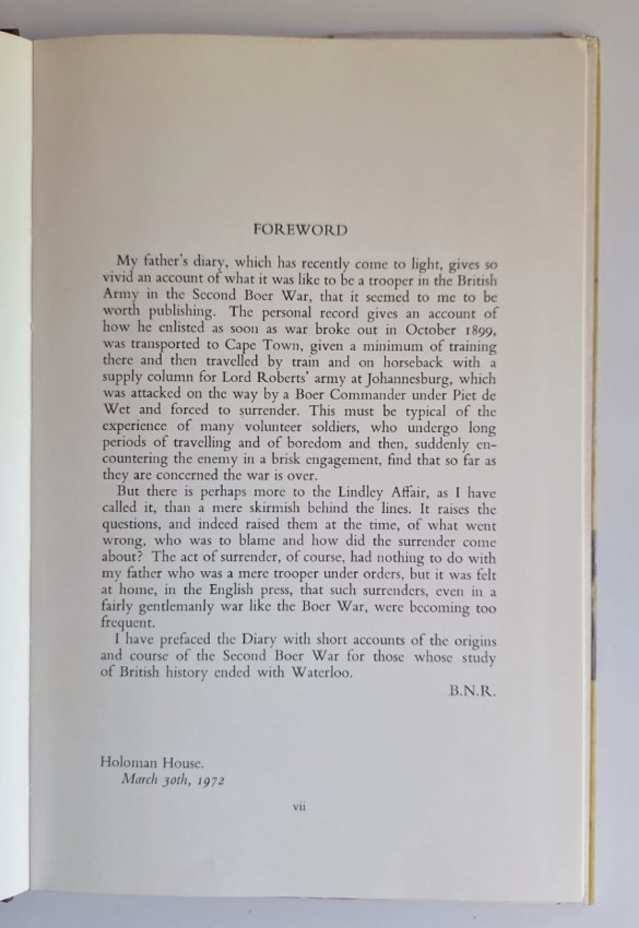 The book centres on the diary of Reckitt's father, Trooper Frank Reckitt of the 47th Company, 13th Battalion Imperial Yeomanry, during the Second Anglo-Boer War.