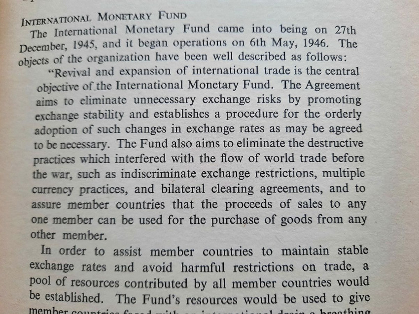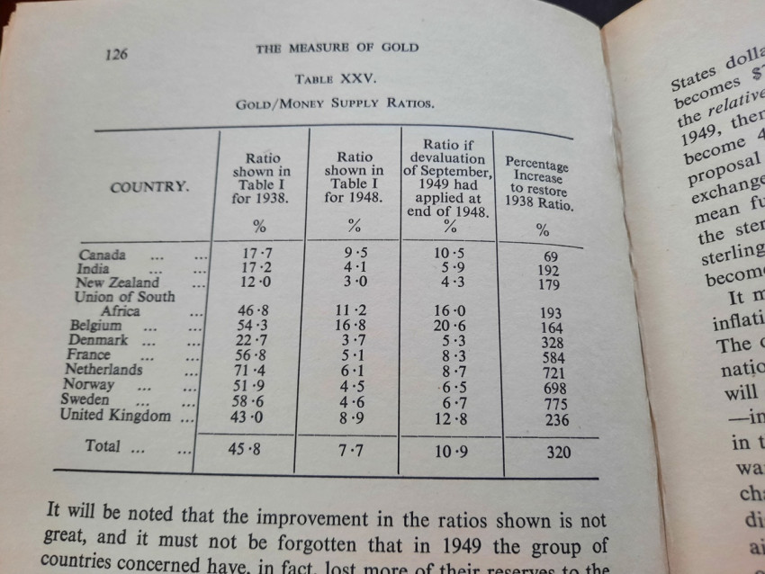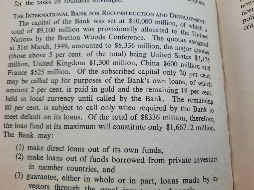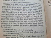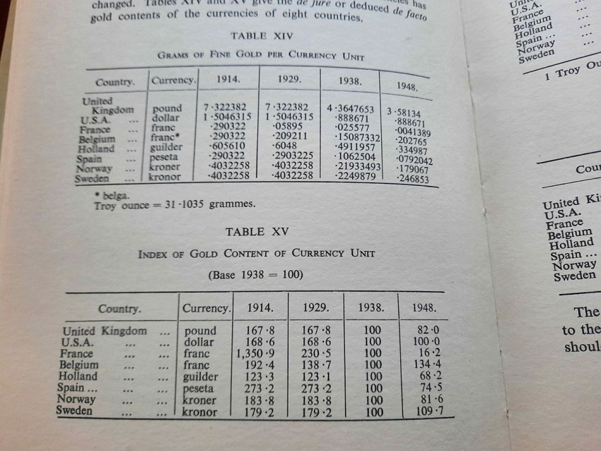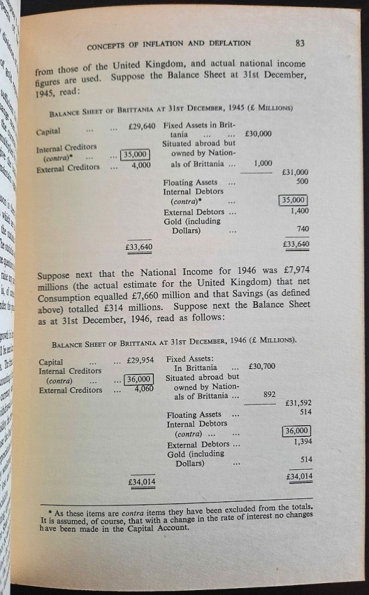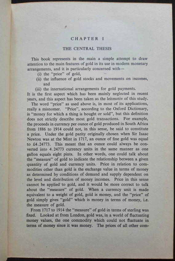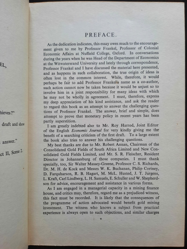 Contains numerous tables, calculations, statisticts, datas, etc. With a two multiple folding tables showing "World Gold Production" from 1929-1948 (Appendix IV) and "Gold Movements United States (Net imports from or net exports to)" from 1934-1948 [with] "Net Capital Movement to U.S.A. since 2nd January, 1935" (Appendix VII). Chapter VII contains sections on International Monetary Fund, The International Bank for Reconstruction and Development, The International Trade Organization, The Anglo-American Loan and The "Marshall Plan" or The European Recovery Programme (E.R.P.).
